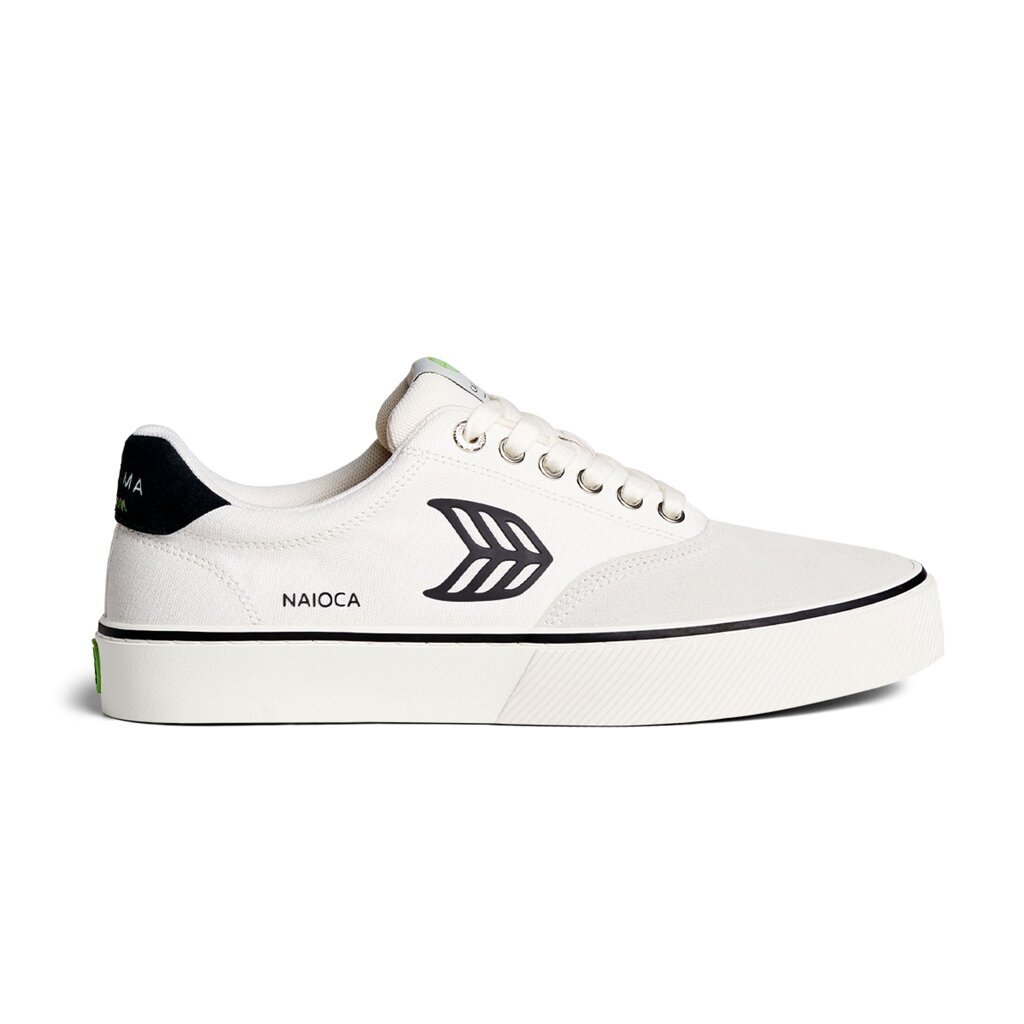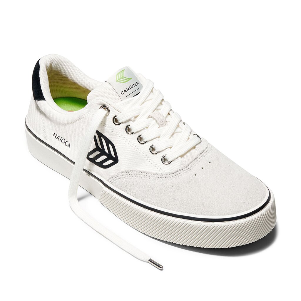 Pánské volnočasové boty Cariuma NAIOCA PRO Vintage White Suede Off-White Canvas Black Logo Sneaker