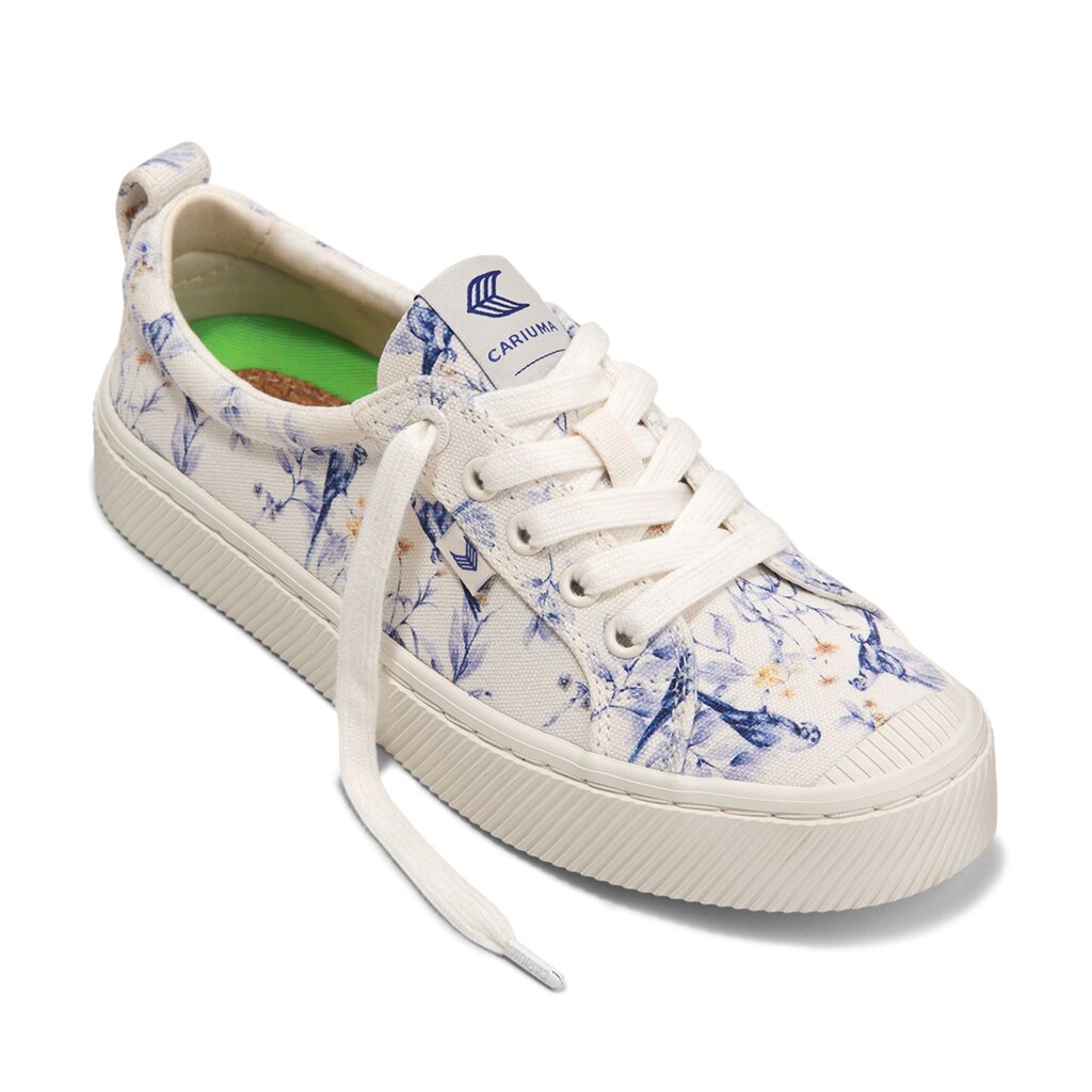 Pánské volnočasové boty Cariuma OCA Low White Spectrum Blue Parrot Print Canvas Sneaker