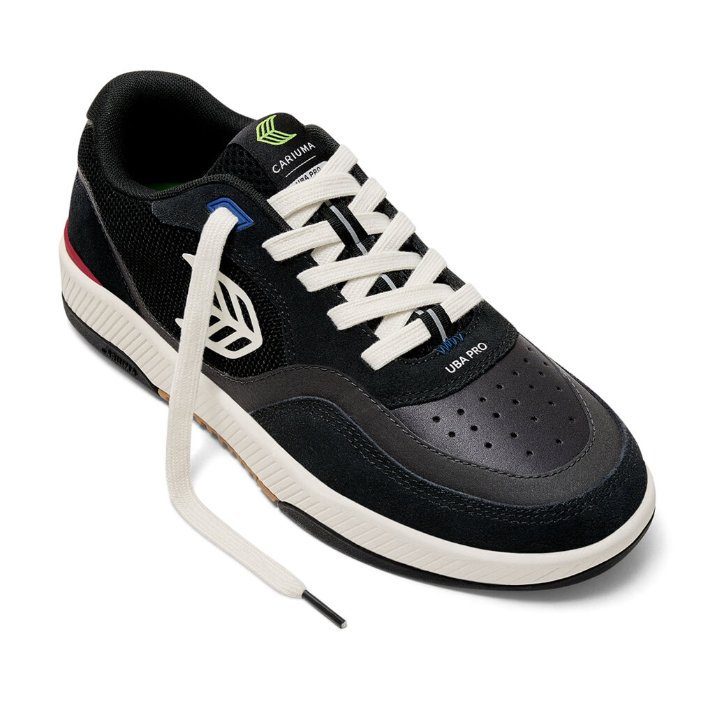 Pánské volnočasové boty Cariuma UBA PRO Black Suede and Mesh Ivory Logo Red Sneaker