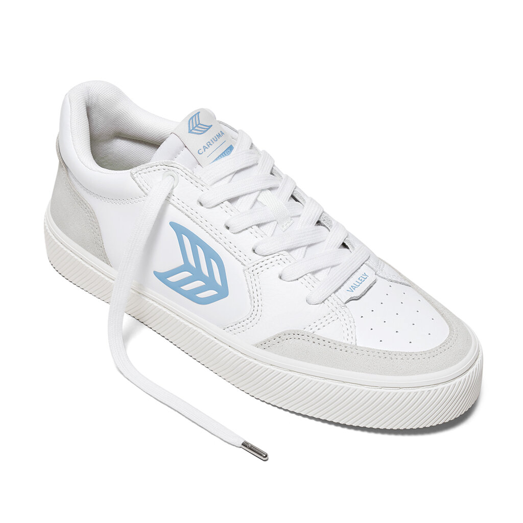 Pánské volnočasové boty Cariuma VALLELY White Leather Vintage White Suede Argentina Blue Logo Sneake